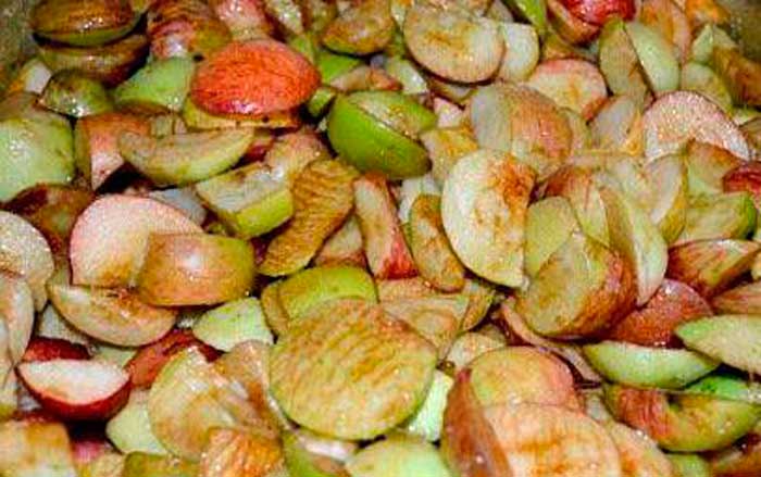 - Как же нам приготовить пюре из яблок для зимних блинчиков? Яблоки промываем, разрезаем и удаляем семена. Нарезаем на ломтики, засыпаем сахаром и доливаем воду. Перемешиваем в кастрюле из нержавеющей стали и оставляем на 20 минут.
